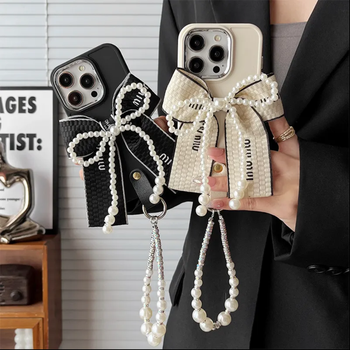 Luxo INS Estilo Pérola Bow Anel Pulseira TPU Silicone Coreano Estilo Ins Phone Case para iPhone 16 Promax 15 Plus 14 Pro 13 12 XS